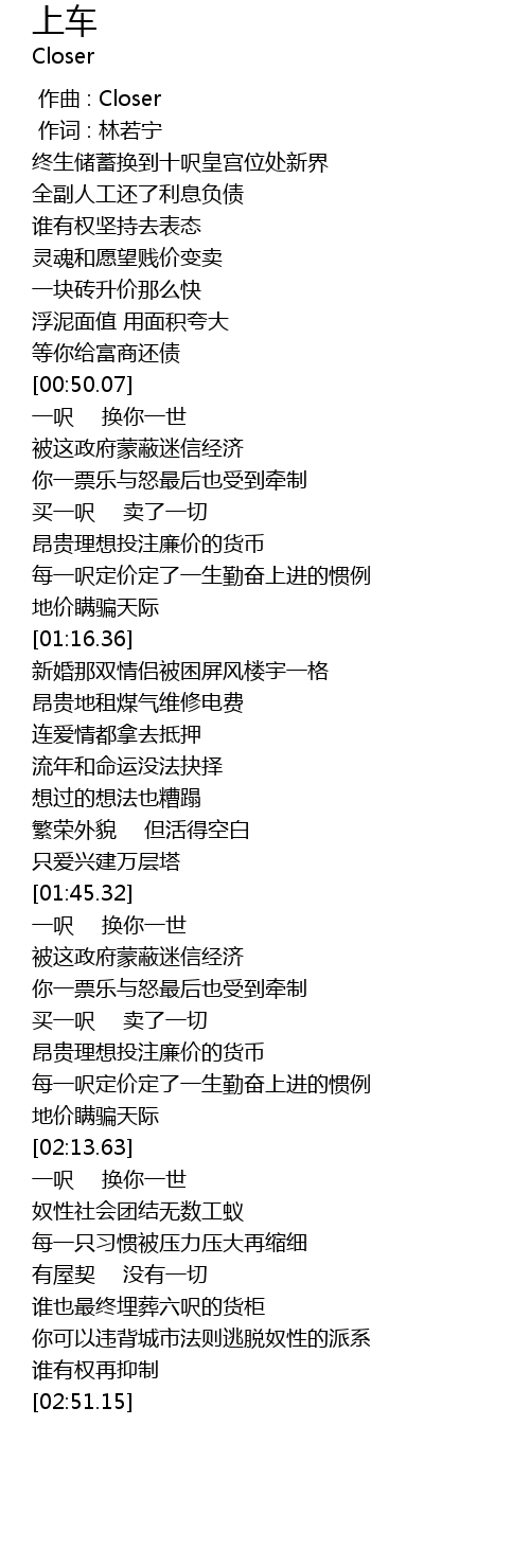 | [01:57.76] | 买一呎 卖了一切 |