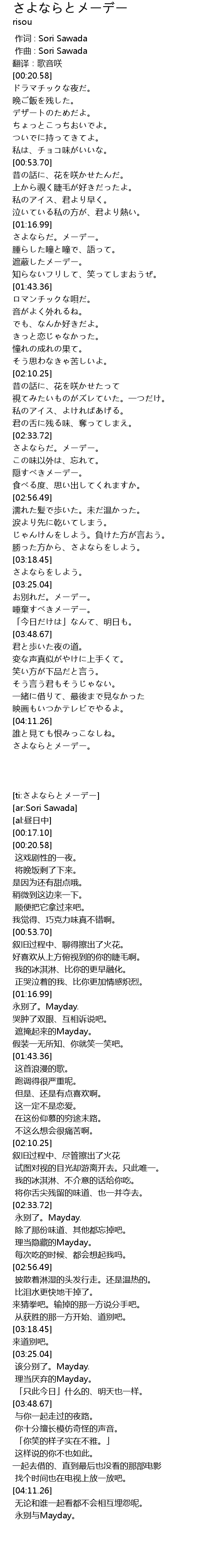 | [04:28.97] | さよならとメーデー。 |