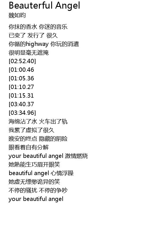| [03:44.36][03:40.37][03:35.44][03:20.51][03:15.59][01:20.17] | beautiful angel |