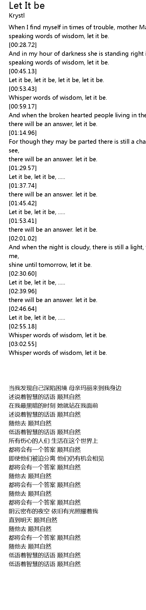 Let it be, let it be, ..... |