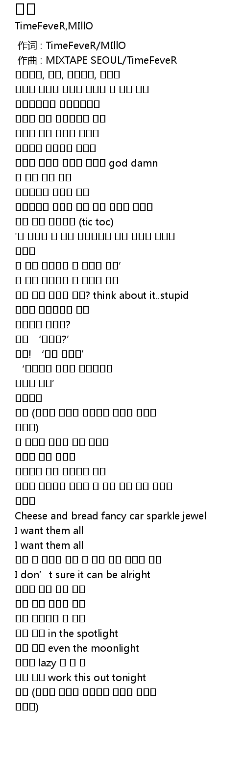 | [00:01.000] | zuò qǔ : MIXTAPE SEOUL TimeFeveR |