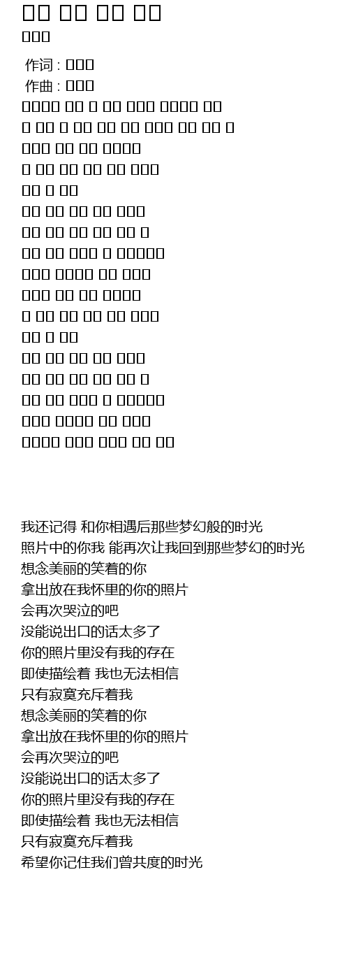 | [00:16.217] | 照片中的你我 能再次让我回到那些梦幻的时光 |