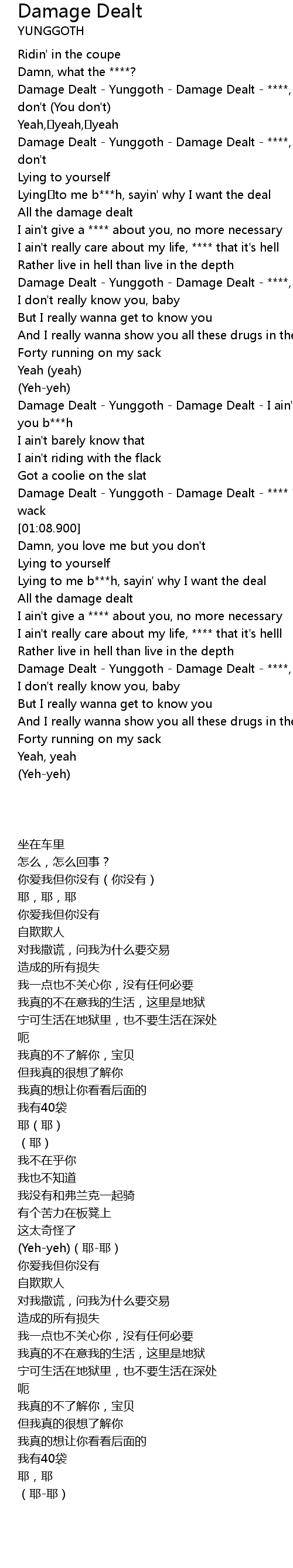 | [00:58.000] | Damage Dealt Yunggoth Damage Dealt I ain' t give a about you b h |