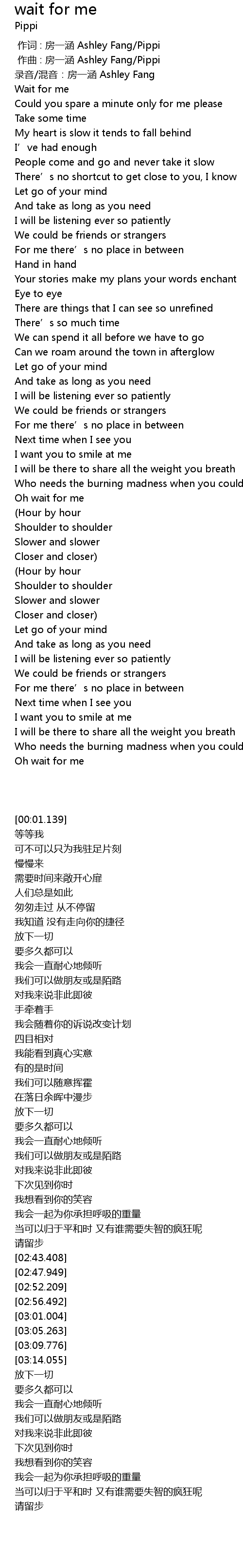 | [00:00.000] | 作词 : 房一涵 Ashley Fang/Pippi |