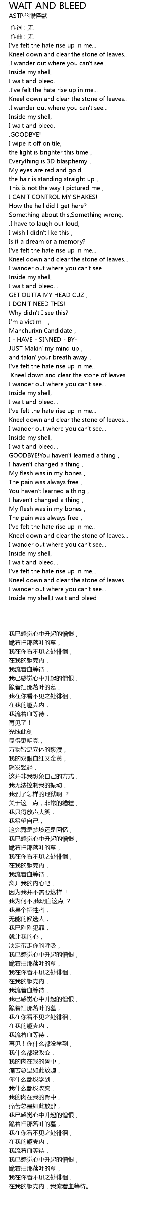 | [00:10.553] | I wait and bleed.. |