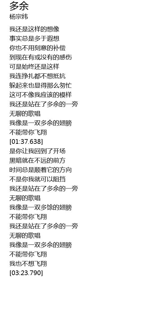 | [02:42.100] | 我像是一双多馀的翅膀 |