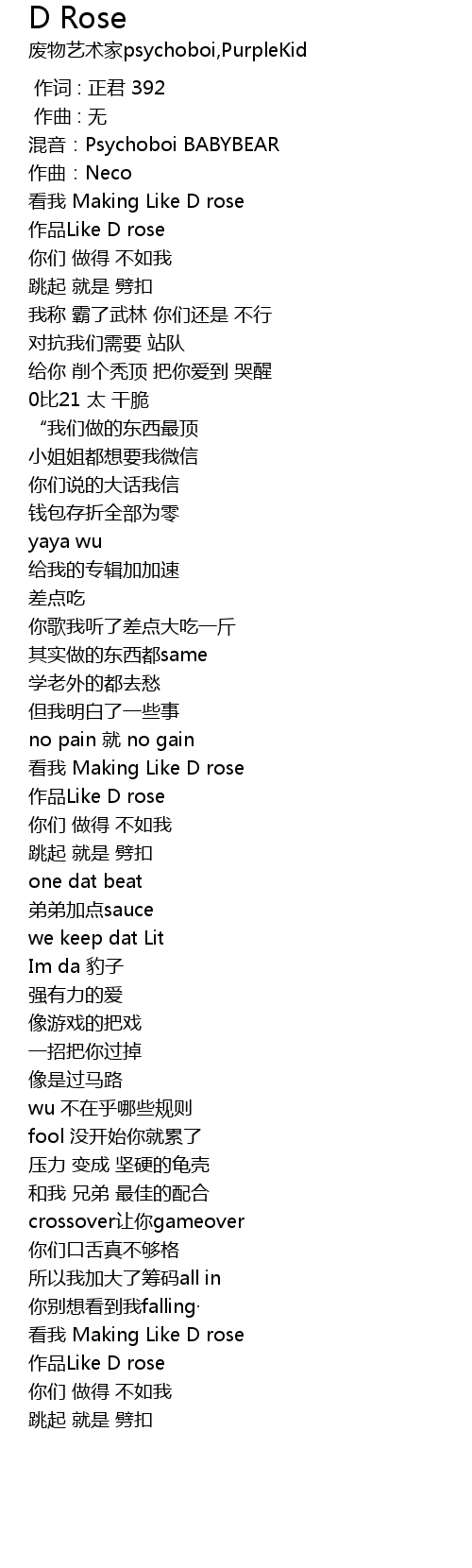 | 歌曲 | D Rose |