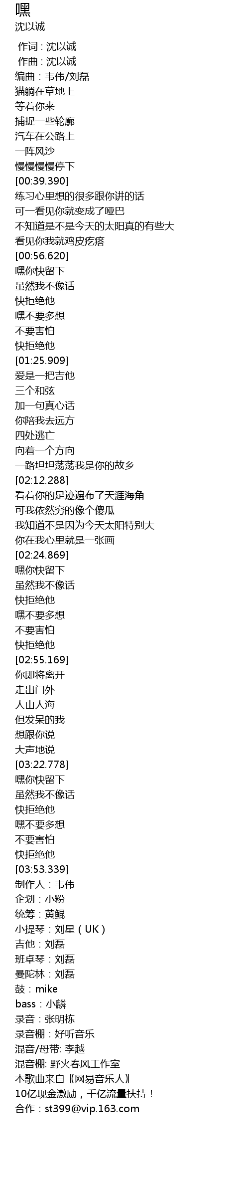| [00:00.000] | 作词 : 沈以诚 |