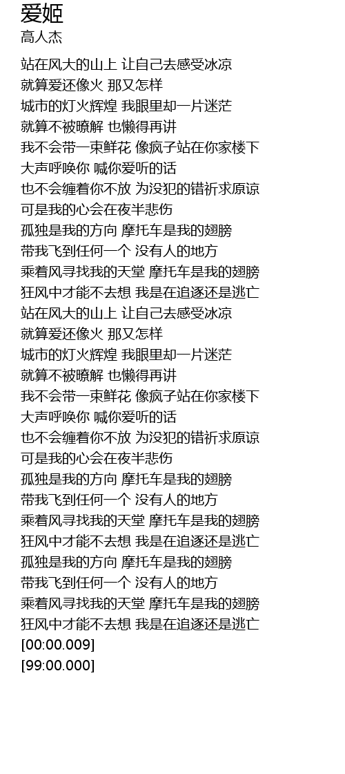 | [04:04.03] | 孤独是我的方向 摩托车是我的翅膀 |