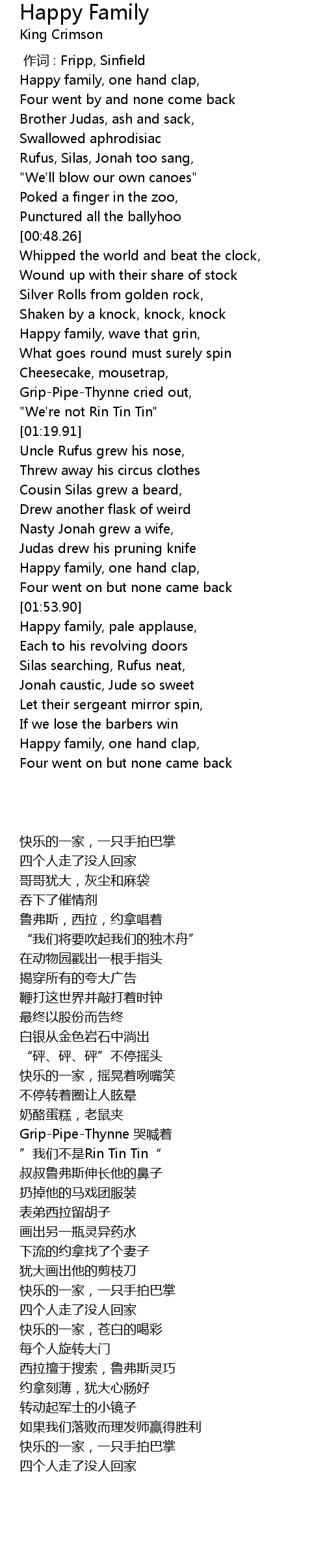 | [03:53.40] | Happy family, pale applause, |