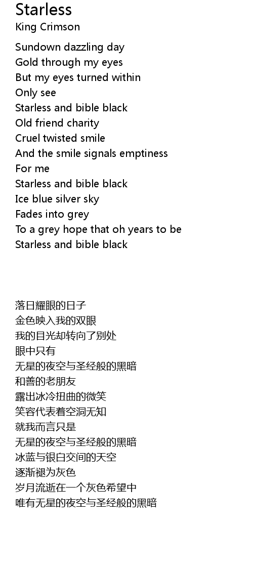 | [04:10.78] | Starless and bible black |