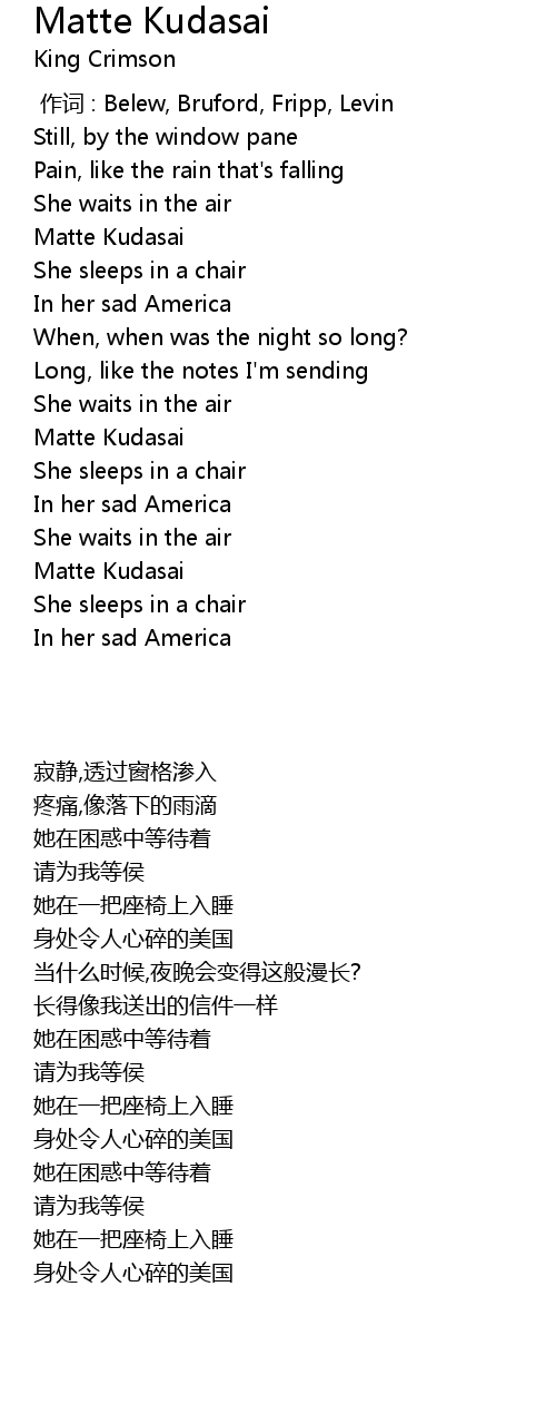 | [00:00.00] | 作词 : Belew, Bruford, Fripp, Levin |