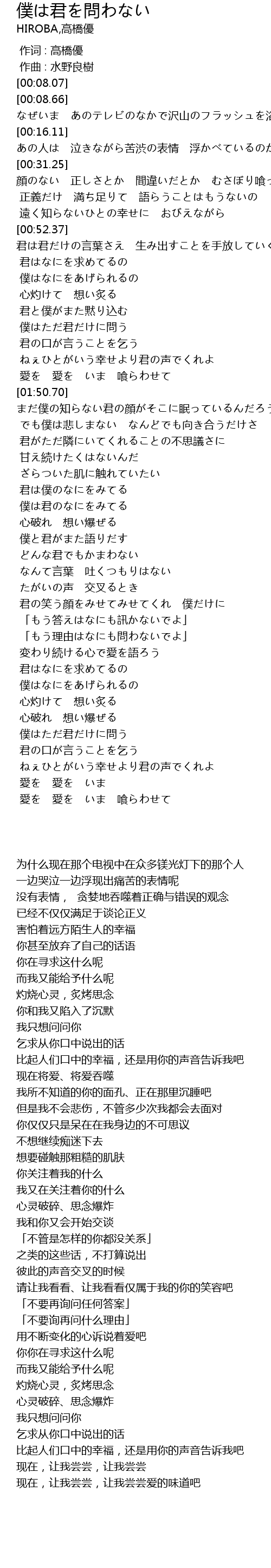 | [03:32.58] | 僕はただ君だけに問う |