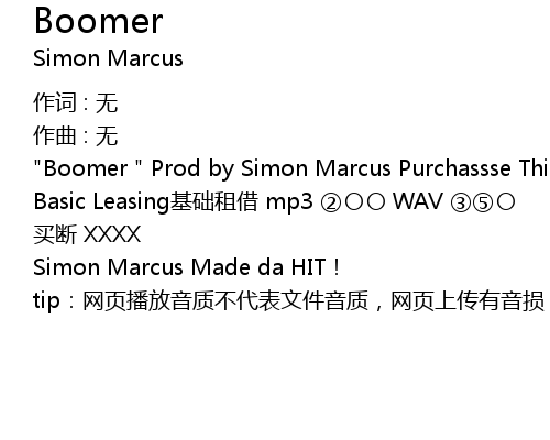 | "Boomer " Prod by Simon Marcus Purchassse This Beat Contact me 见个人主页 | |