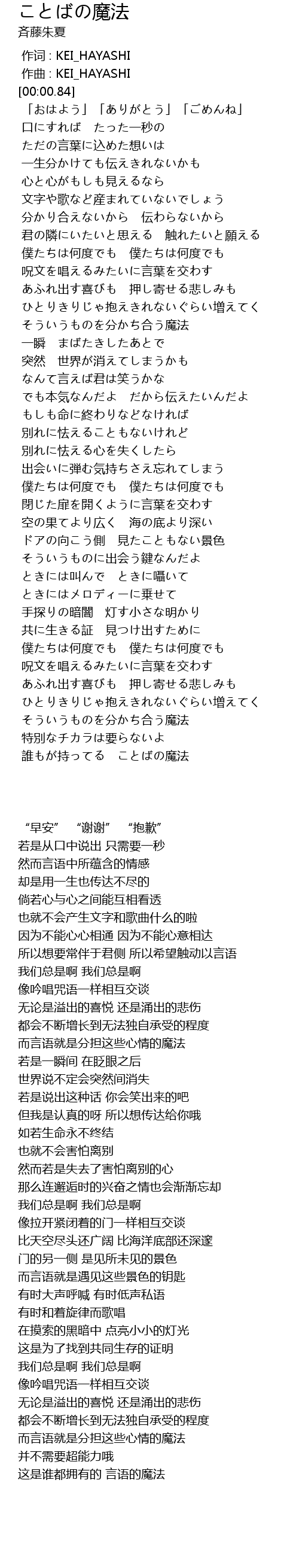 | [03:42.47] | 誰もが持ってる ことばの魔法 |