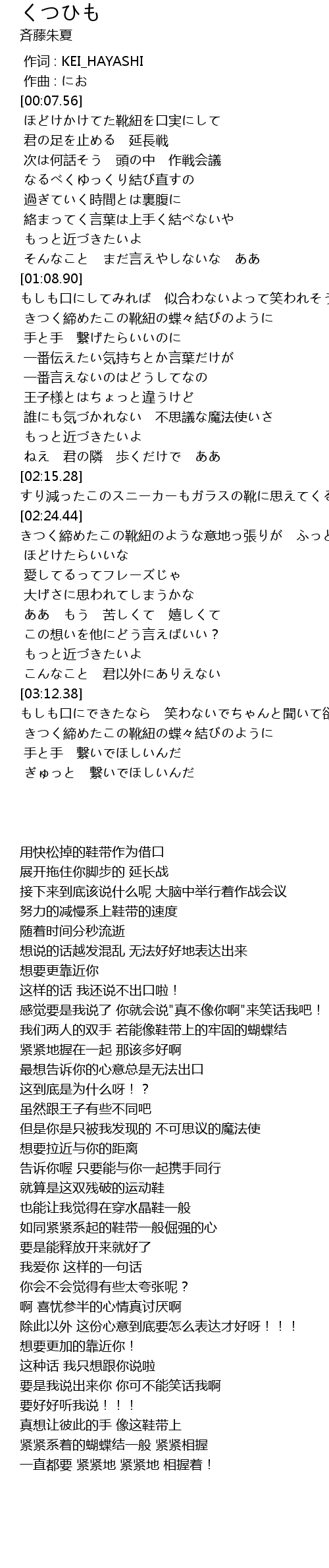 | [00:00.00] | zuò cí : KEI_HAYASHI |