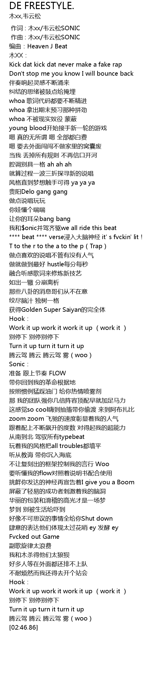 | [00:57.88] | **** beat **** verse浸入大脑神经 it' s fvckin' lit! |