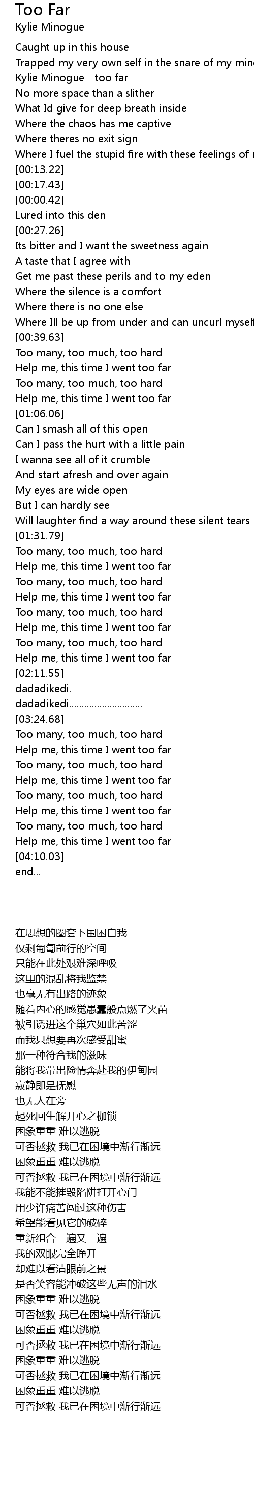 Kylie Minogue - too far |
