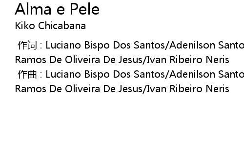 | [00:00.00-1] | 作词 : Luciano Bispo Dos Santos/Adenilson Santos Peluso/Arthur Ramos De Oliveira De Jesus/Ivan Ribeiro Neris |