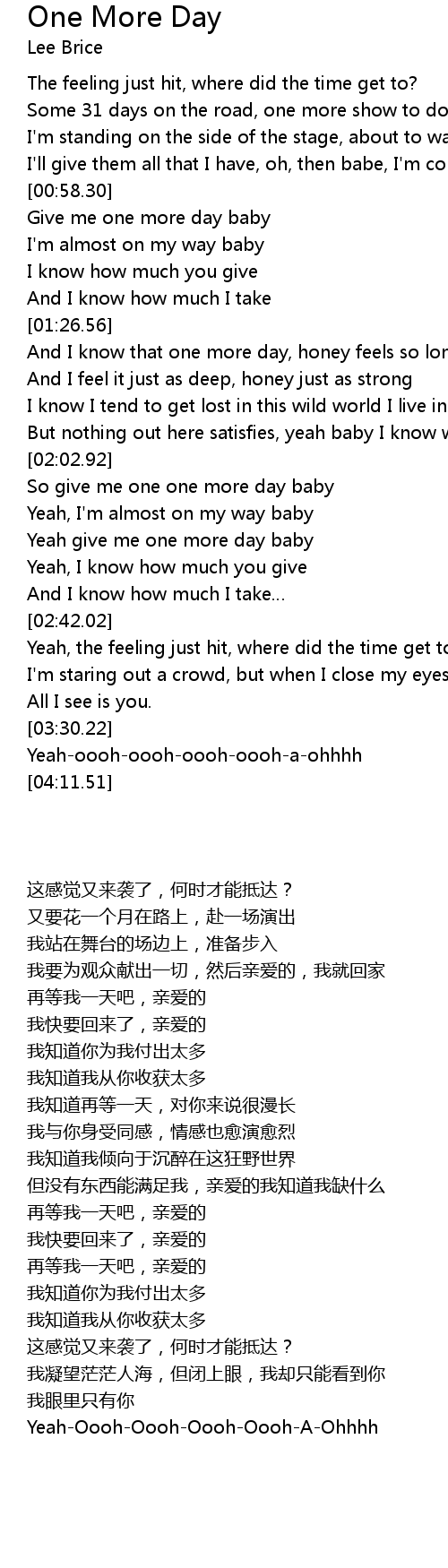 | [02:20.37] | 再等我一天吧,亲爱的 |
