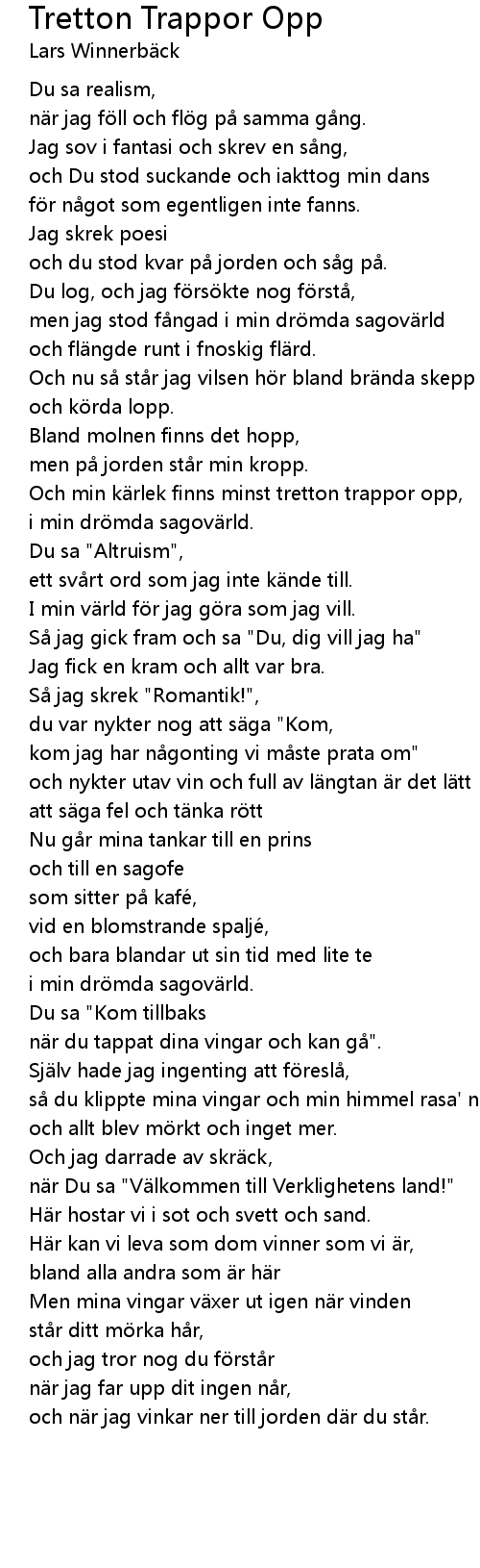 | Och min k rlek finns minst tretton trappor opp, | |