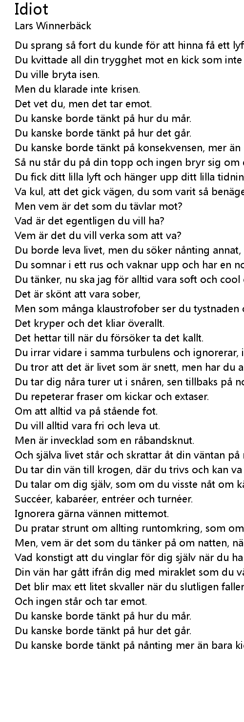 | Du borde leva livet, men du s ker n nting annat, idiot! | |
