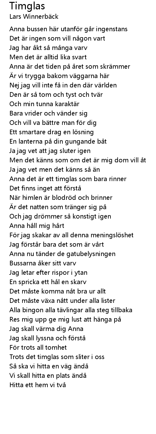 | Anna det r ett timglas som bara rinner | |