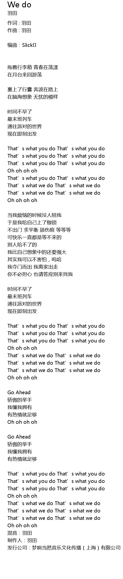 | 歌曲 | We do |