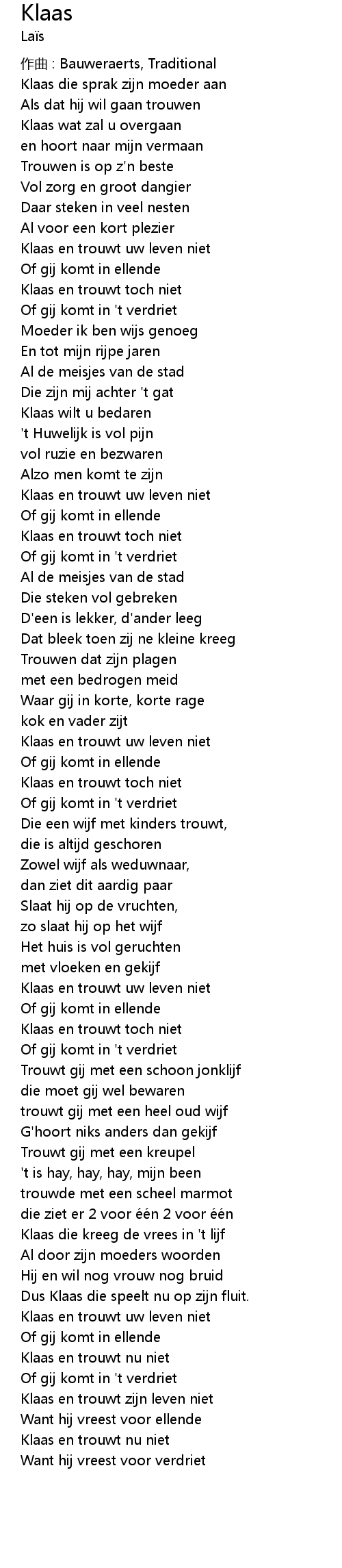| Klaas en trouwt uw leven niet | |