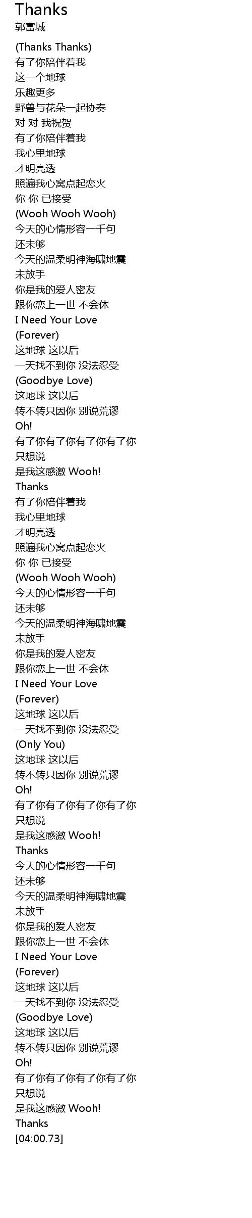 | [03:48.74] | yǒu le nǐ yǒu le nǐ yǒu le nǐ yǒu le nǐ |