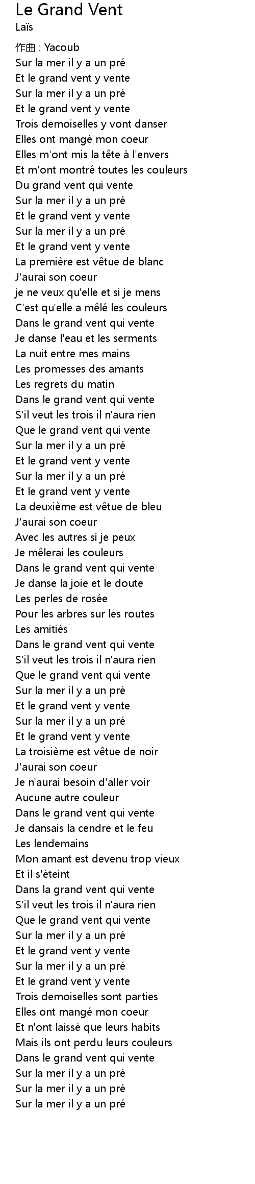 歌曲 Le Grand Vent