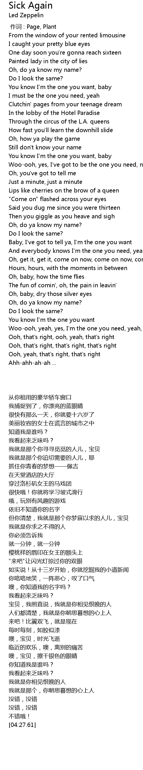 | [00:00.00] | zuo ci : Page, Plant |