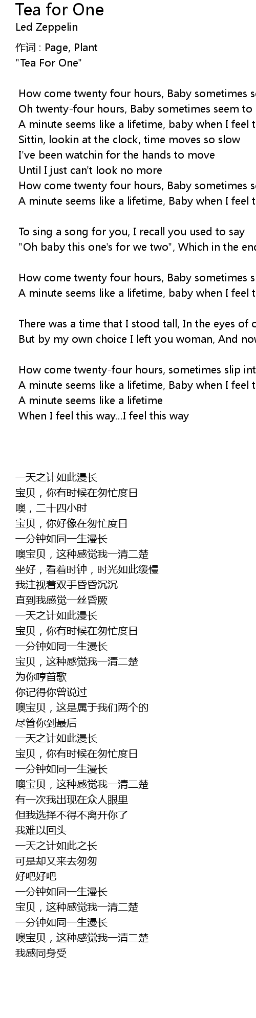| 歌曲 | Tea for One |