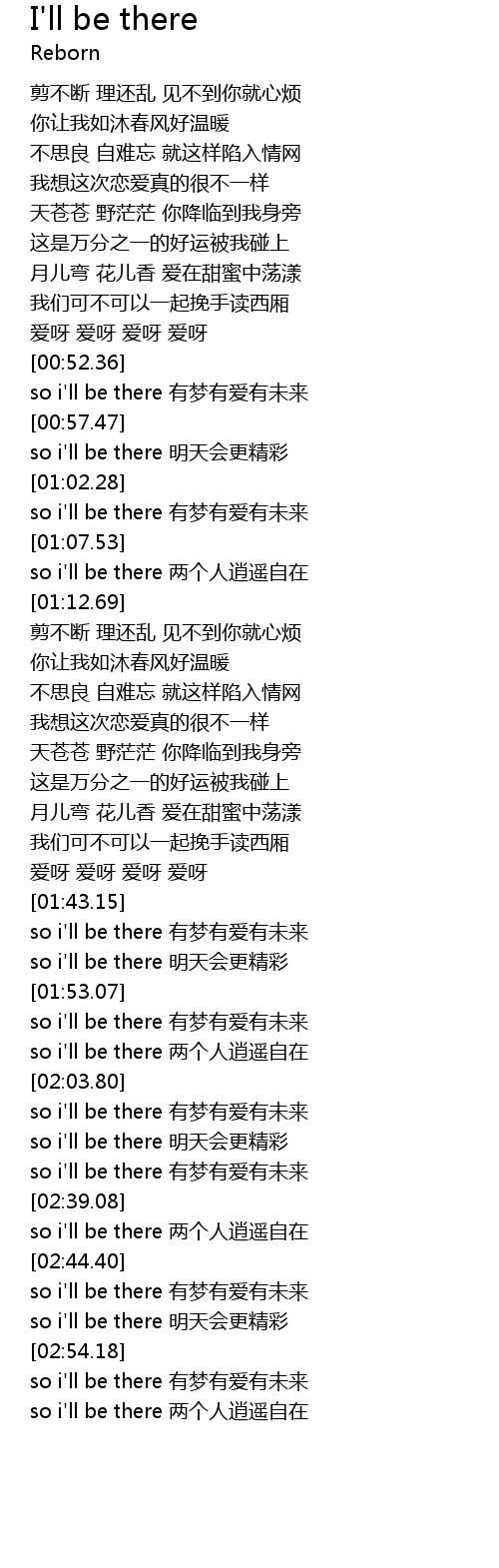 | [02:54.98] | so i' ll be there you meng you ai you wei lai |