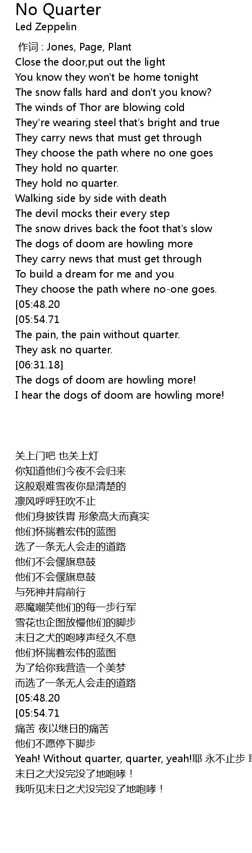| 歌曲 | No Quarter |