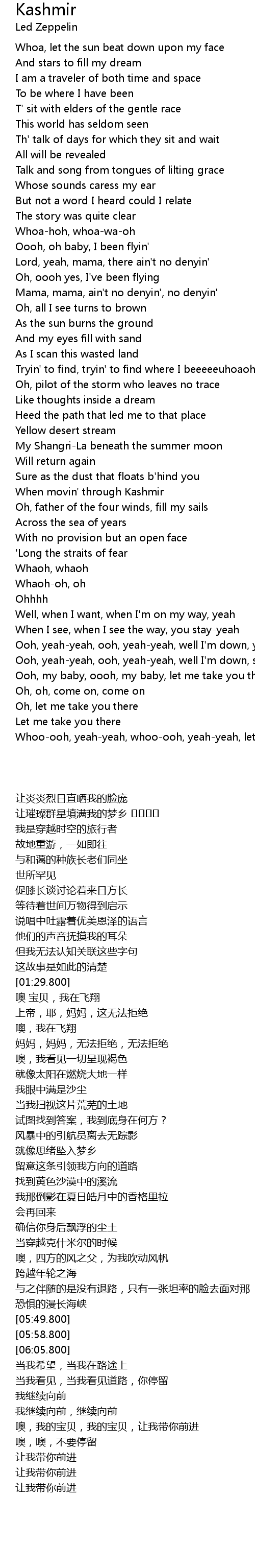 | [05:09.800] | 当穿越克什米尔的时候 |