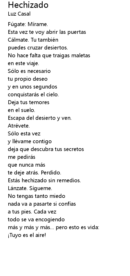 | Estás hechizado sin remedios. | |