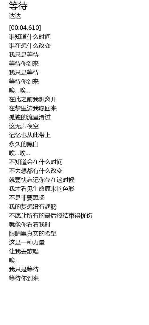 | [03:24.000] | wǒ zhǐ shì děng dài |