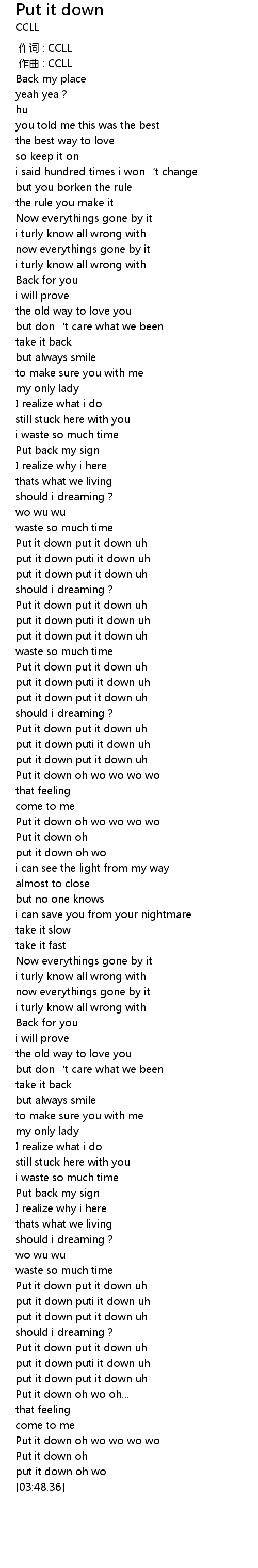 | 歌曲 | Put it down |