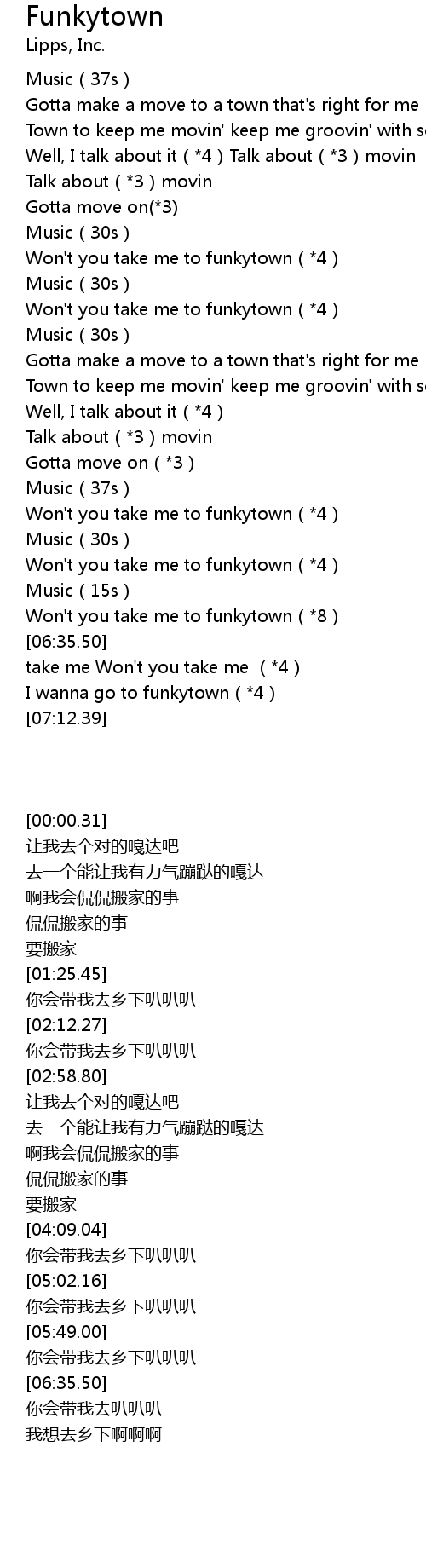 | [06:03.64] | Won't you take me to funkytown(*8) |