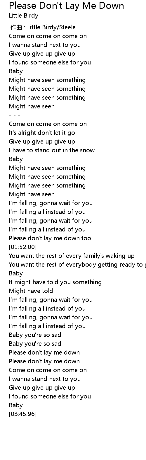 | 歌曲 | Please Don't Lay Me Down |