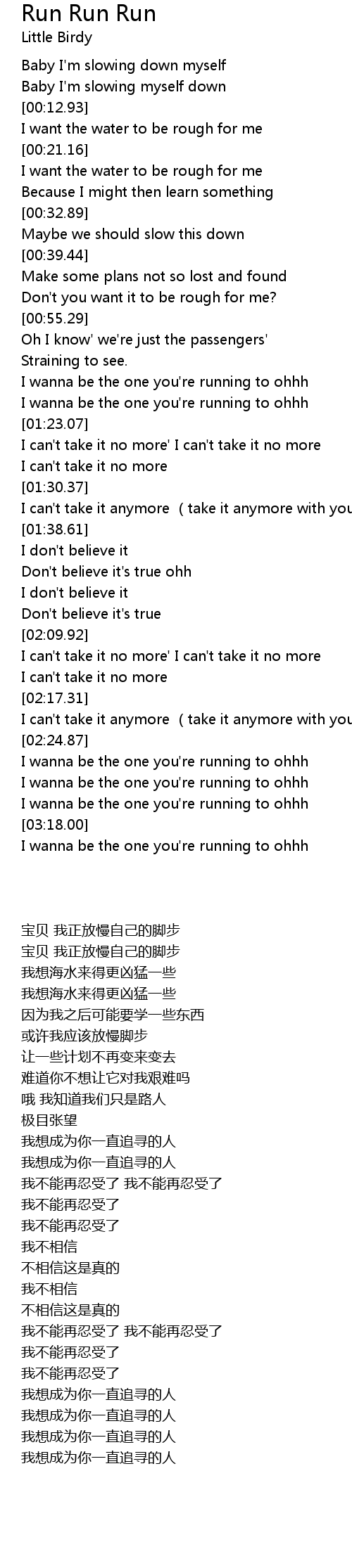 | [03:18.68] | I wanna be the one you' re running to ohhh |