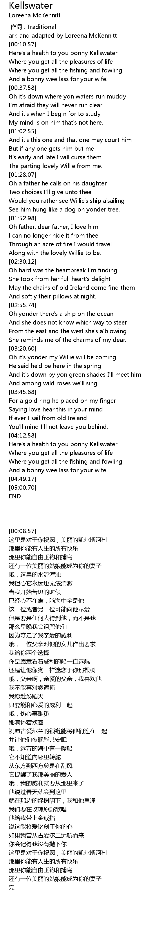| [00:08.57] | arr. and adapted by Loreena McKennitt |