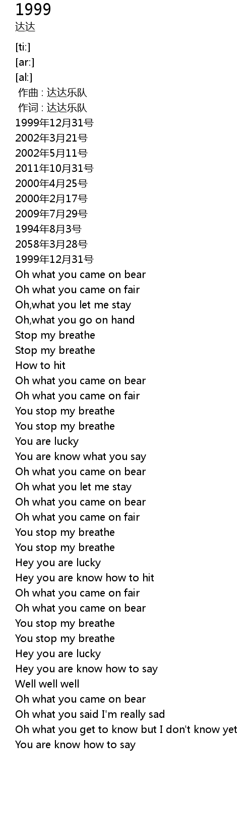 | [00:00.00] | 1999 nian 12 yue 31 hao |