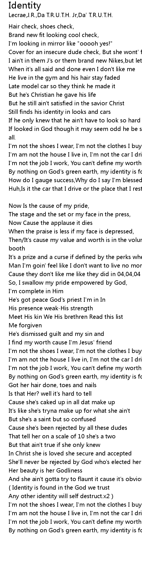 ( Identity is found in the God we trust |