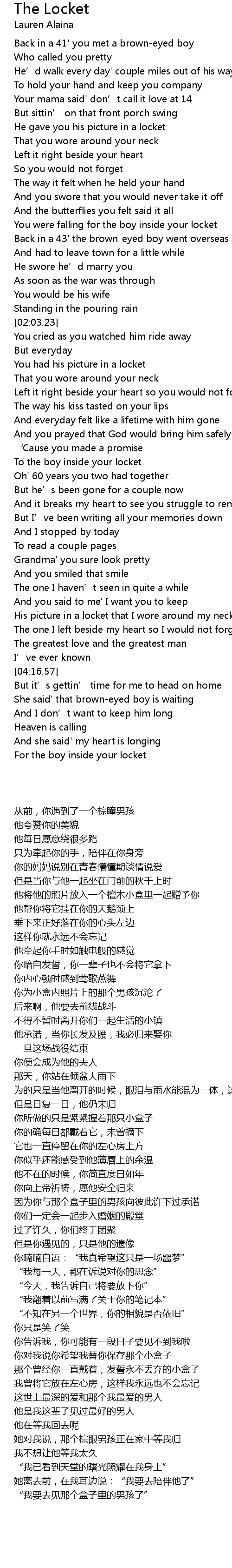 | [03:57.12] | His picture in a locket that I wore around my neck |