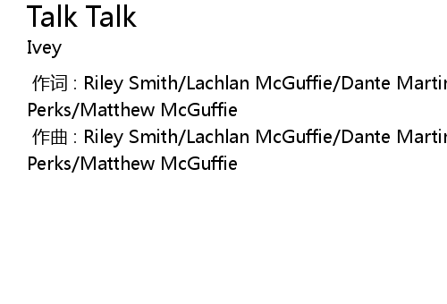 | [00:00.00-1] | 作曲 : Riley Smith/Lachlan McGuffie/Dante Martin/Emily Perks/Matthew McGuffie |