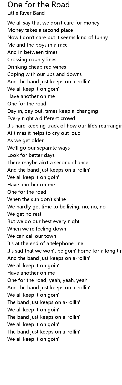 One for the road, yeah, yeah, yeah |