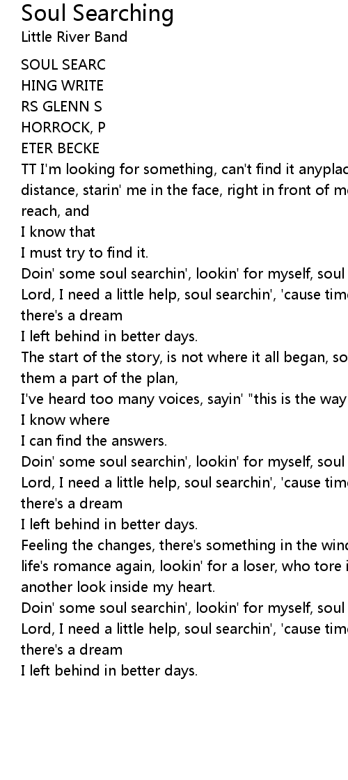 Doin' some soul searchin', lookin' for myself, soul searchin', |