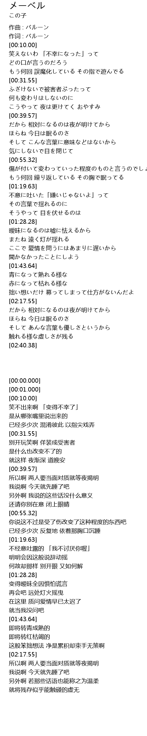 | [00:39.58] | だから 相対になるのは夜が明けてから |